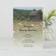 Invitation votre famille à un rassemblement décontracté à domicile avec la charmante Invitation Patinée de Réunion familiale de la région de la grange. Cet invitation de réunion familiale rustique et chic, décoré sur le thème du pays, présente une photo pittoresque pittoresque d'une grange en bois rustique avec de grands arbres verts dans l'arrière - plan et un champ de fleurs sauvages de dentelle blanche de la reine Anne au premier plan.