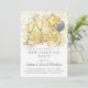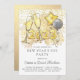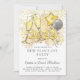 Une invitation de la veille du Nouvel An moderne avec des lunettes de champagne, des ballons et de la parties scintillant avec des rafales de feux d'artifice. Parties scintillant en or platine au dos de l'invitation.