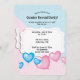 Cette invitation éditable mignonne présente les détails de l'événement sur un fond à pois bleu et rose avec des ballons en forme de cœur rose et bleu en bas. Au dos, se trouve un champ éditable pour des informations supplémentaires. Le texte des deux côtés est modifiable, alors n'hésitez pas à changer les détails ainsi que la taille et la couleur du style de police. Cette invitation peut être utilisée pour une révélation de sexe, des baby showers, etc.