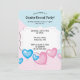Cette invitation modifiable mignonne présente les détails de l'événement sur un fond à pois bleu et rose avec des ballons en forme de cœur rose et bleu en bas. Au dos, se trouve un champ modifiable pour des informations supplémentaires. Le texte des deux côtés est modifiable, alors n'hésitez pas à modifier les détails ainsi que la taille et la couleur du style de police. Cette invitation peut être utilisée pour une révélation de sexe, des baby showers, etc.