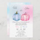 Invitation à la révélation du sexe mignonne, invitation adorable à la fête de révélation du sexe avec citrouille bleue et rose.