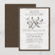 Invitation à la révélation du sexe avec thème de cerf de campagne boisé et bouleau avec fond d'écorce d'arbre rustique et texte brun riche.