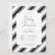 Faire carte d'invitation classique et intemporelle pour baby shower en noir et blanc à motif argyle. Styles de police et disposition personnalisables, avec un fond simple à motif géométrique en forme de losanges. Parfait pour les invitations de baby shower unisexe, les invitations de baby shower pour garçon, et les invitations de baby shower preppy.