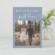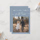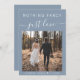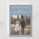 Élégant étage bleu poussiéreux ou faire-part de mariage privé et invitation décontractée à la réception qui comprend votre photo et "Nothing Fancy Just Love" dans un mélange de typographie blanche simple et un script blanc élégant avec des swashes. Sous votre photo, ajoutez vos prénoms et votre date de mariage ou de réception. Au contraire, personnalisez vos détails et ajoutez vos noms dans un script de type signature.