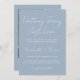 Design moderne et élégant imprimé Simple Dusty Blue & White Delicate Nothing Fancy Just Love Mariage Photo Invitation qui peut être customisé avec votre texte. Cliquez sur le bouton "Customiser" et utilisez notre outil de conception pour modifier ce modèle. Découvrez le magasin Graphic Art Design pour d'autres produits qui correspondent à ce design !