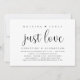 Moderne carte d'invitation de mariage sur le thème de l'écriture noire (Rien de fantaisie, juste l'amour). Elle est parfaite pour votre réception de mariage / fête de célébration après le mariage. Ajoutez vos détails dans la même police / lettrage noir.