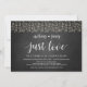 Magnifique carte d'annonce de mariage en fugue 'Rien de fantaisiste, juste amour', ou invitation à une fête, avec des guirlandes lumineuses rustiques modernes et un thème tableau noir. C'est parfait pour votre réception de mariage et votre fête de célébration après-mariage. Ajoutez vos détails dans la même police / lettrage.