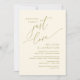 Belle élégance moderne, minimalisme chic, or rétro et crème, faire-part de mariage, carte d'invitation (Rien de fantaisiste, juste de l'amour). C'est parfait pour votre réception de mariage et la fête de célébration après le mariage. Ajoutez les détails de votre invitation de célébration d'évasion amoureuse.