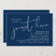 C'est la carte d'invitation de mariage intime, avec un design de script minimaliste / minimaliste bleu marine (Rien de fantaisiste, juste de l'amour).