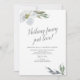 Invitation élégante de dîner de répétition de cérémonie de mariage à l'aquarelle avec des motifs botaniques encadre les détails de la répétition de la cérémonie de mariage et de la célébration du dîner avec une bordure de feuilles et de fleurs à l'aquarelle dans des nuances pâles et fraîches de gris et de verts. Les mots Nothing Fancy Just Love sont écrits dans une typographie calligraphique. Les détails de votre événement sont présentés dans une police élégante sans empattement et script traditionnel. Personnalisez votre modèle avec les détails de votre fête. Parfait pour les mariages de printemps, d'été, d'automne, rustiques ou sur le thème du jardin, les fêtes de fiançailles ou les annonces de mariage. Pour voir plus de modèles comme celui-ci, visitez VG Invites sur www.zazzle.com/vginvites