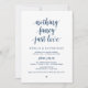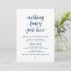 Belle écriture moderne et décontractée, en police de caractères bleue marine, Annonce de mariage en fuite, Carte d'invitation (Rien de fantaisiste, juste l'amour). C'est parfait pour votre réception de mariage et fête de célébration après le mariage. Ajoutez vos coordonnées dans la police de caractères / lettrage correspondant.