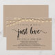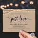 Magnifique carte d'annonce / invitation de mariage intime Rien de fantaisiste, juste l'amour, dans un design rustique à la ferme avec guirlandes lumineuses. C'est parfait pour votre réception de mariage et fête de célébration après le mariage. Ajoutez vos détails dans la même police / lettrage.
