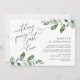 Belle conception romantique moderne, thème aquarelle de feuilles d'eucalyptus, annonce d'élopement de mariage, carte d'invitation (Rien de fantaisiste, juste l'amour). Ceci est parfait pour votre réception de mariage et la fête de célébration après le mariage. Ajoutez les détails de votre célébration de brunch / dîner d'élopement.