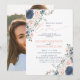 Créez l'invitation parfaite pour un mariage décontracté, ou une célébration de réception après une fugue amoureuse, avec ce modèle moderne et tendance aux fleurs aquarelles bleues poussiéreuses et roses blush, avec une typographie à l'écriture manuscrite. Le design présente votre photo préférée au verso de la carte. Contactez le concepteur pour des produits assortis. Merci beaucoup de soutenir notre petite entreprise, nous vous en sommes vraiment reconnaissants !