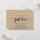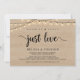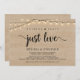 Rien de Fantastique, Juste de l'Amour, Carte d'Annonce / Invitation de Mariage Intime, sur fond de Bois de Ferme Rustique, avec Guirlandes Lumineuses. C'est parfait pour votre réception de mariage et fête de célébration post-mariage. Ajoutez vos détails dans la même police / lettrage.