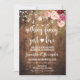 Le modèle de réception de mariage rustique indique "Rien de fantaisiste, juste de l'amour" et présente un fond en bois rustique, des fleurs aquarelles et des guirlandes lumineuses. Pour accéder aux outils d'édition avancés, veuillez aller dans "Personnaliser" puis cliquer sur le lien "cliquez pour personnaliser davantage".