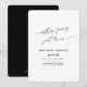 Rien de fantaisiste, juste de l'amour, Invitation de mariage en fuite en écriture moderne simple dans un élégant noir et blanc tendance.