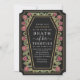 Il est temps de dire adieu aux années trente et d’embrasser les quarante avec style! Ces invitations de 40 ans ont un design élégant de cercueil sur roses et épines avec le texte "Mort à ses trente", parfait pour une fête sombre et glamour! Commandez maintenant et faites de cette étape inoubliable ! Veuillez noter que l'or sur l'invitation n'est PAS un vrai papier d'aluminium et est imprimé en couleurs plates.