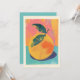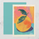 Cette image vibrante présente une orange colorée et stylisée avec des feuilles verts, sertie contre un arrière - plan rose et orange vivant. Les oeuvres d'art ont une ambiance pop art moderne et ludique.
