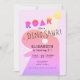 Invitation ROAR T-Rex Dinosaur Neon Fille Rose Anniversaire