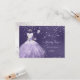 Carte de remerciement élégante pour Quinceanera par PixDezines avec une robe violette poussiéreuse à paillettes, papillons roses et violets dorés, fleurs violettes poussiéreuses. Fond iridescent avec filtres pour ajuster la tonalité. Tous les éléments sont modifiables.
