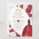 Personnalisez cette élégante Quinceañera florale rouge et blanc / Sweet 16 anniversaire invitation facilement et rapidement. Cliquez simplement sur le bouton Modifier à l'aide des outils de conception pour modifier les textes, modifier les polices et les couleurs des polices. Avec des fleurs rouges et blanches, une fille habillée d'une belle robe de bal rouge et d'une couronne de princesse d'or. Parfait pour quinceanera, sweet sixteen, 18ème anniversaire, boule debutante et bien d'autres occasions! Objets correspondants disponibles en magasin. c) Somerset Fine Paperie