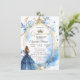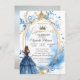 Tiare parties scintillant argent, robe princesse bleu aquarelle et cadre sur arrière - plan argent. Amusez-vous à votre soirée quinceañera avec cette élégante invitation. Invitation tes invités à lever un verre et à se joindre à la fête avec ces invitations festives.