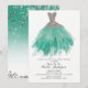 Invitation pour une douche de mariée avec robe de soirée pailletée argent et sarcelle