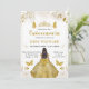 Cette invitation de Quinceañera époustouflante présente une magnifique princesse à la peau foncée portant une robe dorée, rayonnant d'élégance et de grâce. Entouré de florales douces et de papillons dorés, le design allie sophistication et touche de magie, créant l'invitation parfaite pour une célébration mémorable. Idéale pour un événement de Quinceañera, elle incarne à la fois le charme royal et la beauté chaleureuse, donnant le ton pour une occasion vraiment spéciale. Un excellent choix pour quiconque souhaite créer une invitation époustouflante et personnelle pour leur Quinceañera.