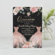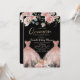 Elégante robe de parties scintillant rose en or et fleurs sur un arrière - plan noir.