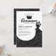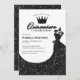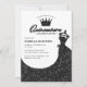 Parties scintillant noire Les invitations Quinceañera avec une robe de boule étincelante et le design de la couronne créent une façon élégante et royale de célébrer le 15e anniversaire d’une jeune femme. Avec son look imitation parties scintillant époustouflant et sa palette noire, cette invitation combine le glamour et le raffinement. Les éléments attrayants comprennent une robe de gloire, une couronne et une typographie gracieuse qui mêle écriture manuscrite et polices modernes simples pour un style équilibré et formel. Le dos de la carte continue le thème avec un effet de parties scintillant noire, ajoutant une finition luxueuse. Parfait pour les célébrations formelles de Quinceañera, cette invitation donne le ton d'un événement magique et étoilé. Disponible sous forme de cartes imprimées ou en téléchargement numérique instantané.