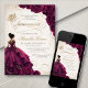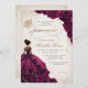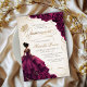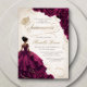 Scatter une goutte de romance de conte de fées sur sa quinceañera nuit avec ce design romantique de coing princess ball gown. Les oeuvres d'art rêvées et la typographie élégante confèrent à ce design une atmosphère magique et élégante. Idéal pour une célébration de quinceañera à thème ou classique. Commandez vos invitations imprimées ou téléchargez vos invitations numériques dès maintenant pour une nuit qu'elle n'oubliera jamais !