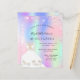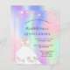 Une invitation moderne, élégante et glamour pour une Quinceañera, 15ème anniversaire. Un arrière - plan holographique rose, violet et vert menthe avec des étincelles faux roses et une robe blanche. Le nom est écrit avec un script de style moderne écrit à la main. Personnalisez et ajoutez les détails de votre fête.