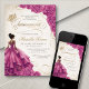 Scatter une goutte de romance de conte de fées sur sa quinceañera nuit avec ce design romantique de coing princess ball gown. Les oeuvres d'art rêvées et la typographie élégante confèrent à ce design une atmosphère magique et élégante. Idéal pour une célébration de quinceañera à thème ou classique. Commandez vos invitations imprimées ou téléchargez vos invitations numériques dès maintenant pour une nuit qu'elle n'oubliera jamais !