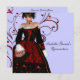 Invitation Robe Rouge Coeur Flûte pourpre Quinceanera