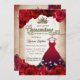 Elégante robe papillon Roses rouges vintages Quinceañera design invitation.