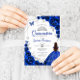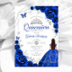 Invitation à la célébration de la Quinceanera en bleu, argent et blanc. Caractéristiques, brune fille en robe de robe de bal, police de script, papillons, roses d'aquarelle et tiara. Parfait pour une élégante célébration de glamour de style princesse. Personnalisez avec vos propres détails. Invitations Zazzle imprimées ou téléchargement instantané modèle imprimable numérique.