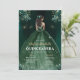 Invitation Robe verte de fleurs QR Code Quinceanera
