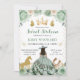 Elégante aquarelle Brunette princesse haïe dans salon vert sauge design robe occidentale avec fleurs vertes et blanches, papillons et confettis parties scintillant or.