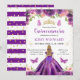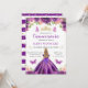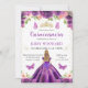 Elégante aquarelle Blonde princesse aux cheveux dans la robe violette profonde avec fleurs violet et or, papillons et confettis parties scintillant or.