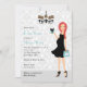 Robin Oeuf Bleu léopard Pregnant Maman Baby shower Invitation présente une mère enceinte de cheveux rouges pour tenir un cadeau bleu et un cadeau avec du papier de tissu empreinte de léopard. Arrière - plan damassé gris clair avec un lustre empreinte de léopard.