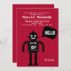 Ce robot sympathique dit "Bonjour". C'est un étonnant match contre le arrière - plan rouge baies avec les plus petites rayures. Parfait pour la célébration d'un enfant.