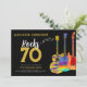 Personnalisé Rocks 70 or typographie moderne 70e anniversaire invitations de fête avec notes de musique et trois modèles de guitare colorés cool aquarelle. Ce modèle facile d'utilisation crée l'invitation parfaite pour célébrer soixante-dix dans le style rock n roll et est idéal pour un guitariste, musicien et mélomane amoureux. N'importe quel guitariste vous dira que vous ne pouvez jamais avoir trop de guitares, alors ces guitares électriques, guitare acoustique et illustrations de guitare semi-acoustique sont un bon début. La conception moderne d'instruments de musique célèbre l'énergie musicale de ce merveilleux instrument de musique et est la façon parfaite de faire la fête d'un soixante-dixième anniversaire. OEuvre originale de l'artiste Catherine Sweetman