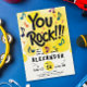 Préparez-vous à faire du rock ! Invitations amis et famille pour célébrer l'anniversaire de votre adolescent avec cette invitation vibrante rock'n roll. Le design présente une aquarelle jaune vif arrière - plan avec des notes musicales colorées qui dansent à travers la page. Le slogan audacieux, "You Rock", est écrit en une frappe de typographie peinte à la brosse noire, ajoutant une ambiance dynamique et pointue. La typographie moderne complète le design ludique. L'arrière de l'invitation est d'un jaune vif, ce qui renforce l'atmosphère énergique. De plus, le texte est personnalisable, ce qui vous permet de personnaliser les détails pour une célébration à la fois amusante et pleine d'énergie. image pour l'arrière - plan de la maquette par @freepik