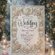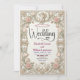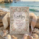 Définissez le ton d'une cérémonie de jardin de conte de fées avec ce design orné mettant en vedette une sauge douce, une rose poussiéreuse et une typographie classique. Élégant, vintage et romantique. Ce design présente une composition rendue numériquement imitant la profondeur des reliefs en stuc du XVIIIe siècle. La mise en page est centrée sur un fond crème encadré par un travail de défilement complexe et des feuilles d'acanthe dans un ton beige ombré. À l'intérieur de la bordure, une illustration détaillée représente deux cygnes blancs formant une forme de cœur, flanqués de chérubins fantaisistes jouant de la harpe. Des grappes de tulipes rose poussiéreux et de roses roses douces accentuent les coins. La hiérarchie de la typographie utilise un script manuscrit bordeaux pour les noms, ancré par une police serif