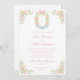 At the heart of the invitation lies a hand-painted monogram crest, inspired by the floral beauty of the Rococo era. The intricate design features a harmonious blend of blue, gold, soft pinks, and greenery. This crest serves as a stunning centerpiece, symbolizing the unity and love shared by the couple.