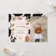 Invitation photo de Rodeo Cowgirl Editable Anniversaire. Venez fêter votre anniversaire avec élégance avec cette invitation à l'anniversaire Rodeo Cowgirl! Avec un thème western amusant avec des imprimés de vache, des accents roses, des bottes de cowboy et des graphismes casquettes, c’est parfait pour la journée spéciale de votre petite cowgirl. Personnalisez facilement les détails en utilisant le modèle modifiable. Idéal pour les fêtes d'anniversaire au rodéo, à l'ouest ou à la campagne !