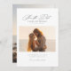 Découvrez la beauté de votre amour grâce à notre mariage photo moderne romance côtière Save The Date. Dotée d'une photo époustouflante au coucher du soleil, cette carte élégante est parfaite pour les mariages sur le thème de la plage. La calligraphie manuscrite en noir et blanc ajoute une touche de romantisme intemporelle, tandis que le design recto verso assure un charme élégant et contemporain. Idéal pour les mariages de destination moderne, cette carte de sauvegarde allie minimalisme tendance à l'élégance classique, ce qui en fait la meilleure façon d'annoncer votre journée spéciale.