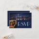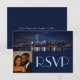 Featuring a stunning nighttime skyline with shimmering reflections, this RSVP card blends modern sophistication with heartfelt personalization. The deep navy blue panel paired with a romantic couple’s photo creates a timeless and intimate aesthetic—perfect for weddings that celebrate both love and city dreams.