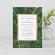 Un design audacieux et frais avec des feuilles de palmiers peints et une bordure en faux or pour un thème d'été et de mariage tropical.